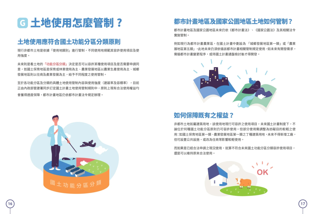 - 已經合法申請之現況使用,如不符合未來國土功能分區分類容許使用項目,仍可以維持原來使用。