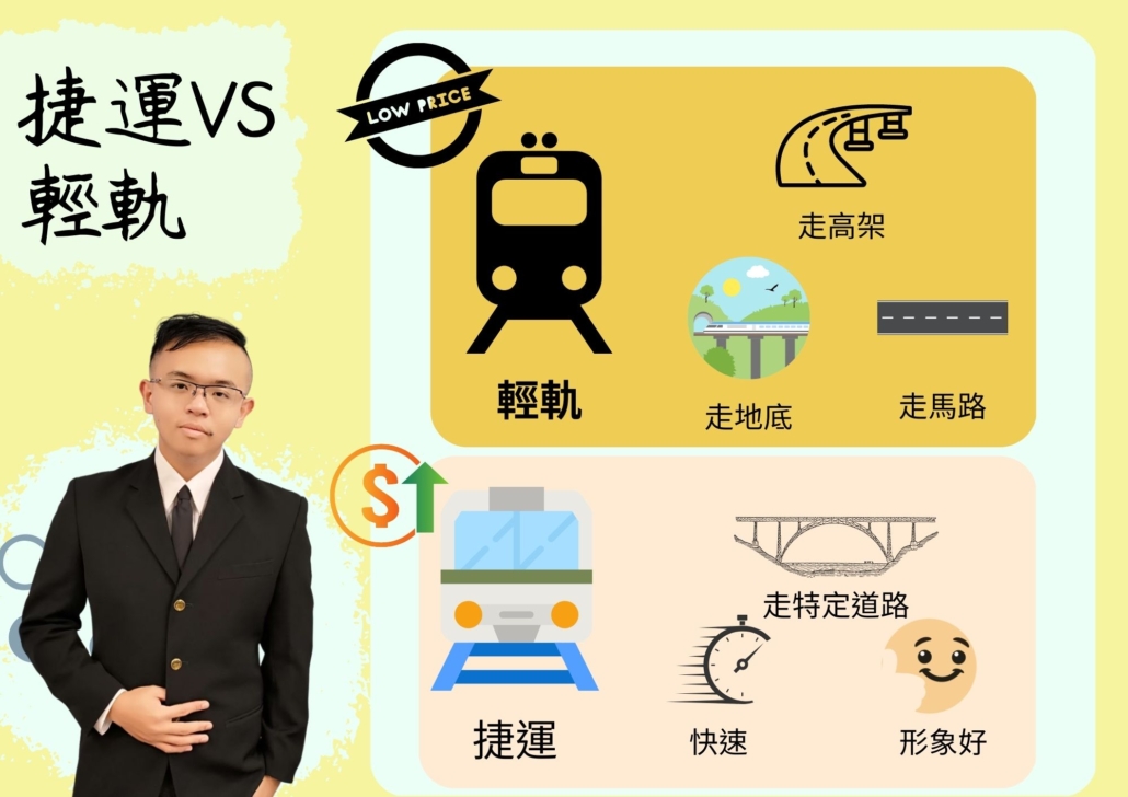 小又一開始有強調捷運跟輕軌的不同在於路權使用的問題,捷運有單獨的軌道運行,成品高但是速度快;