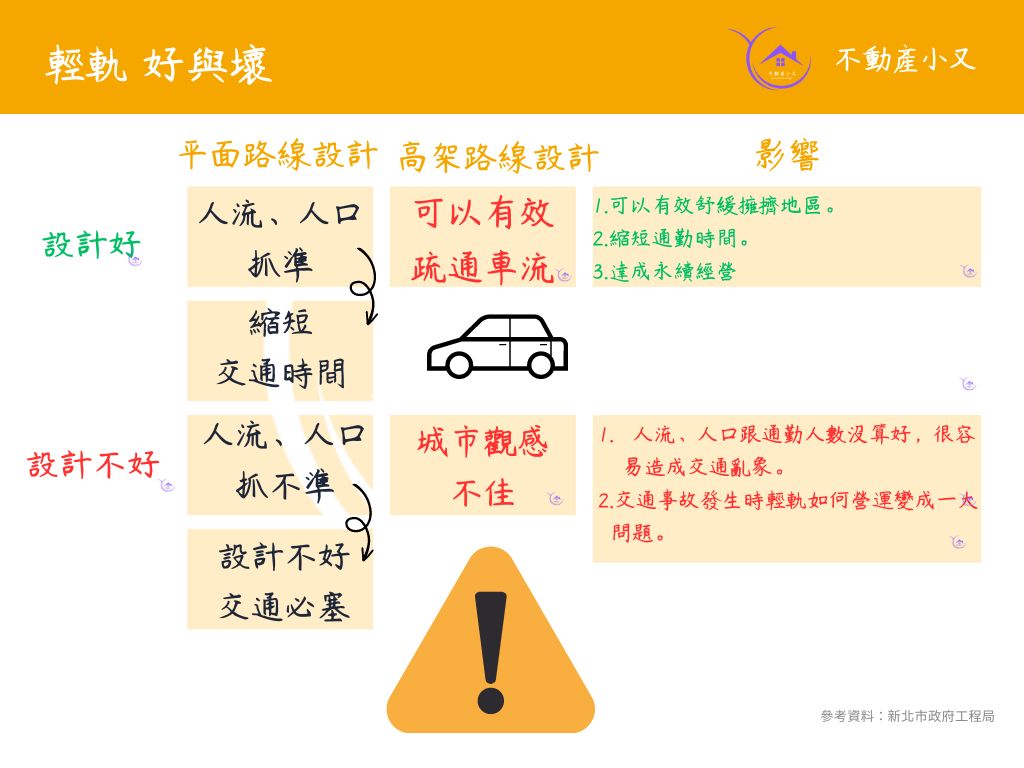 畢竟輕軌不向捷運一樣快,而且輕軌還會跟路上的車一起等紅綠燈,你覺得在交通壅擠的新北,你還會相信輕軌會增值嗎?