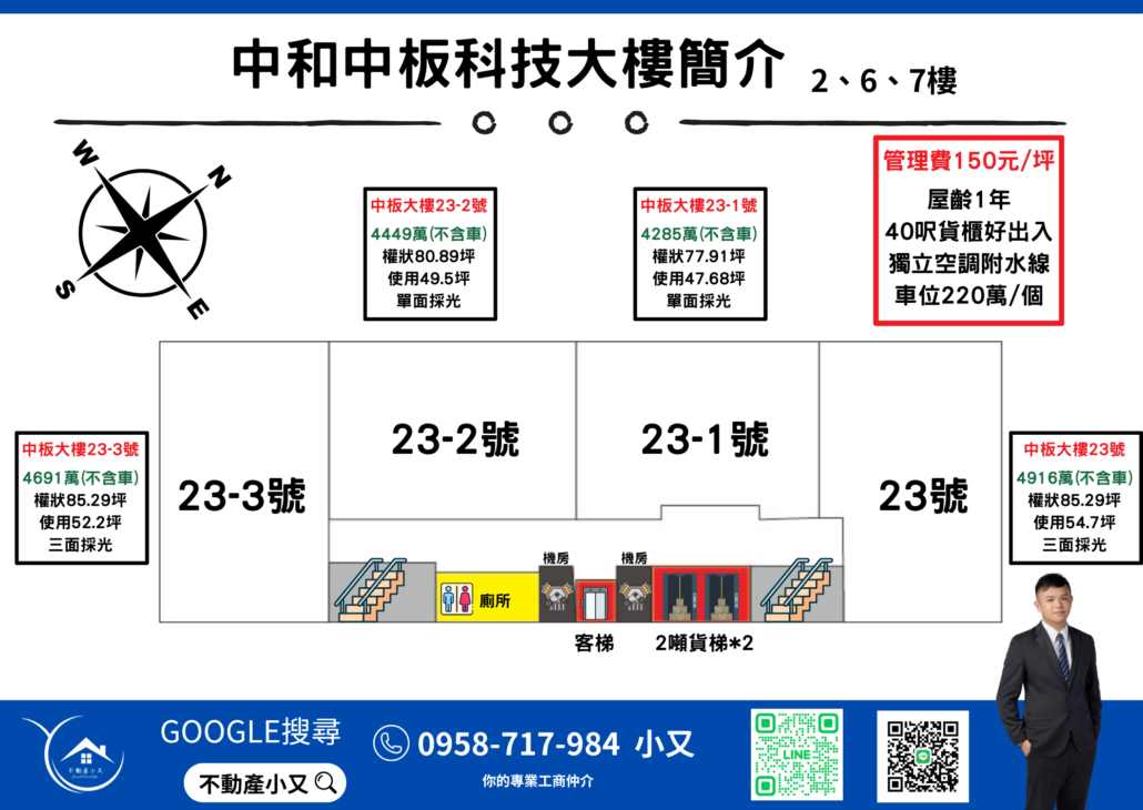 【中和廠辦】- 中板科技大樓12 2 月, 2025/0 評論/在: 所有文章/通過: ZeoYou 嗨!各位好久不見,我是小又!由於三重廠辦都介紹的差不多了,所以小又在2025年決定將廠辦的範圍擴大,慢慢接觸周遭的廠辦,而這間廠辦則是我第一間接觸的中和廠辦,後續還會陸續接洽中和各區的廠辦,歡迎大家追蹤!.今天要來跟大家介紹位於中和區中板路的全新廠辦 – 【中板科技大樓】 中和中板大樓 .中和中板大樓地理位置 中板科技大樓是位於 新北市中和區中板路23號 地上9樓、地下2層樓的廠辦距離環狀線中原站550M(走路8分鐘)中板廠辦內部結構 中板廠辦目前配置如上圖,這是2025/02/12的配置價格,其中23-3號與23號是三面採光2樓以下載重2噸、2樓以上載重1噸如果您有興趣了解更多可以觀看下方的VR實景中板大樓優缺點 以上就是簡單介紹中和的中板大樓的簡介,如果有想進一步了解廠辦歡迎加入我的 line官方帳號.中和中板大樓VR實景 以上是小又這次帶來的【中板廠辦】分享,若是您有廠辦的需求歡迎加入我的line官方帳號私訊我,之後小又還會繼續創作三重、上新莊廠辦的介紹,若是你想要看哪間廠辦的介紹也歡迎跟我說!期待與你的相遇。 http://www.wolung.com.tw/wp-content/uploads/2026/02/未命名設計.png 0 0 ZeoYou http://www.wolung.com.tw/wp-content/uploads/2026/02/未命名設計.png ZeoYou2025-02-12 02:26:312026-02-21 06:20:16【中和廠辦】- 中板科技大樓