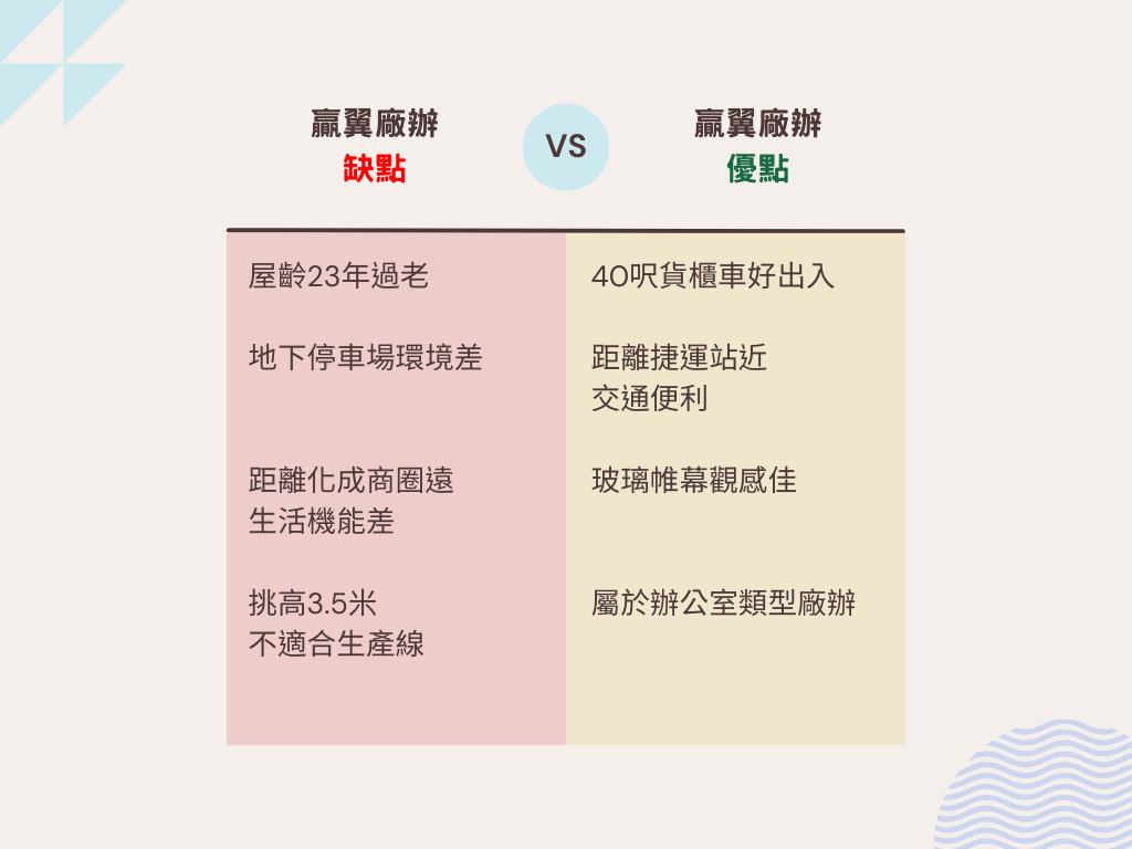 【三重廠辦】- 贏翼廠辦25 8 月, 2023/0 評論/在: 所有文章/通過: ZeoYou 嗨!各位好久不見,我是小又!認識小又的就知道,我主要是經營新北工商類用不動產,不管是上新莊廠辦,下新莊透天或是各式商辦店面都有接觸,我又是一個愛分享的人,所以專門架設這個網站提供給需要知識的人,若是您後續在新北有工商類產品需要我幫忙服務我也很期待跟您相遇! 今天小又要來跟大家介紹的知識地位於頂崁工業區的廠辦之一 – 【贏翼廠辦】 贏翼廠辦地理位置 贏翼廠辦是坐落於新北市三重區興德路111號~123號的廠辦大樓,建物主體為地上13層、地下3層。 距離先嗇宮捷運站約950m 贏翼廠辦整體為玻璃帷幕大樓、建物完工日期為2000年、是屋齡為23年的新古屋。位於頂崁工業區近先嗇宮、幸福捷運站、鄰近台64與新莊中正路交通非常便利 贏翼廠辦內部結構 一樓大廳與碼頭方向 此為贏翼方向示意圖 上圖左側圍前往贏翼大廳方向、右側為前往贏翼碼頭方向 一樓大廳 一樓大廳 贏翼碼頭腹地廣40呎貨櫃車好出入 各層建物平面示意圖 贏翼大樓主體為六部貨梯、六部客梯,貨梯載重為1800kg / 2000kg、每層樓約23~25戶。(上圖為示意圖,實際以地政機關資料登載為主) 贏翼廠辦優缺點 以上是小又這次帶來的贏翼廠辦分享,若是您有廠辦的需求歡迎加入我的line官方帳號私訊我,之後小又還會繼續創作三重、上新莊廠辦的介紹,若是你想要看哪間廠辦的介紹也歡迎跟我說!期待與你的相遇。 參考文章【三重廠辦】- 贏翼廠辦 【三重廠辦】- 育達廠辦 【上新莊廠辦】- 幸福a+廠辦 【三重廠辦】- 萬國財星廠辦 【三重廠辦】- 台北科技城 【三重廠辦】- 阿姆斯壯企業總部 【三重廠辦】- 遠東鴻運廠辦(遠東abc廠辦) 【三重廠辦】- 利達廠辦 【三重廠辦】前瞻企業大樓 【工商 | 讓你少賠幾千萬】買廠房注意事項 【工商 | 讓你少賠幾十萬】租廠房注意事項 我的fb粉絲專業我的ig粉專我要找廠房 回所有文章回首頁 https://www.wolung.com.tw/wp-content/uploads/2023/08/dji_fly_20230825_105723_0_1692932243227_photo-scaled-1.webp 1920 2560 ZeoYou http://www.wolung.com.tw/wp-content/uploads/2026/02/未命名設計.png ZeoYou2023-08-25 04:05:392023-08-25 04:05:39【三重廠辦】- 贏翼廠辦