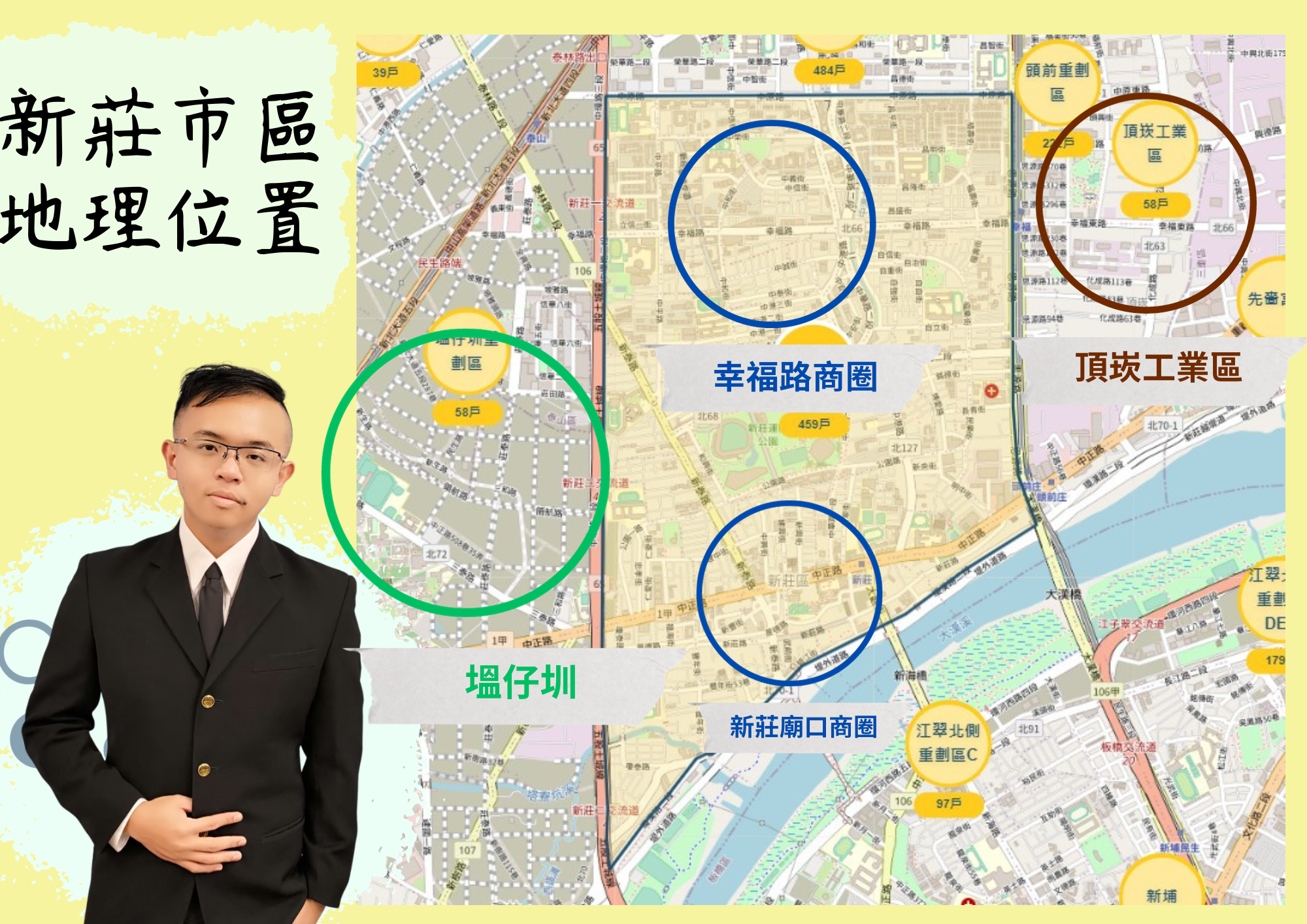 新莊北臨蘆洲、西臨泰山、東臨三重且南臨板橋區,身為一個工商仲介,大家都知道蘆洲、三重、板橋這三個區域的人口密度是多高,而新莊這個區域正好周邊都是人口密度高的地方,也造就很多這些區域的人往新莊流動,從上新莊一直過了新莊中正路,直到下新莊…….,而今天我們將從下新莊一路介紹回上新莊,結合歷史與區域周遭狀態與未來發展帶領大家去了解新莊的神秘面紗。