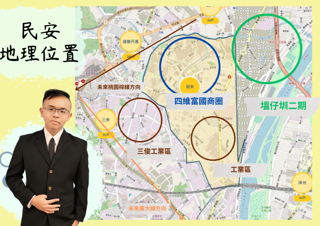 而在未來這區域則有規劃兩條新捷運線,分別是連接桃園的棕線與連接土城的萬大樹林線,起點都是迴龍站,所以這區域未來的發展是非常可以期待的!再者小又再【樹林區未來發展中】也提到樹林中正路沿線有很大的機會有變化,而民安這區域剛好也在樹林中正路隔壁,正好佔在發展三角地帶的一角(迴龍、民安、三俊街),我覺得未來還會有發展的機會,最後這區域又鄰近塭仔圳二期可謂是喜上加喜,這區跟迴龍丹鳳可謂是未來發展的重大區域。