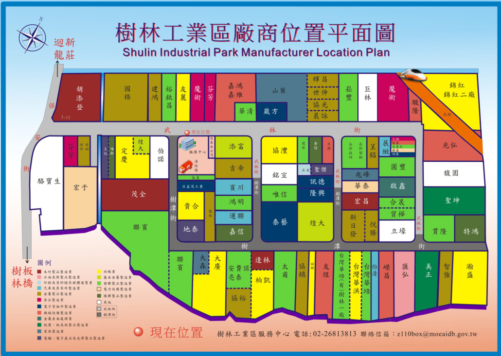 - 樹林工業區位於台北縣樹林市,與新莊、板橋、土城、龜山、鶯歌相鄰,距離火車站一公里、北二高土城交流道約8公里、中山高林口交流道約18公里,交通便利快捷。