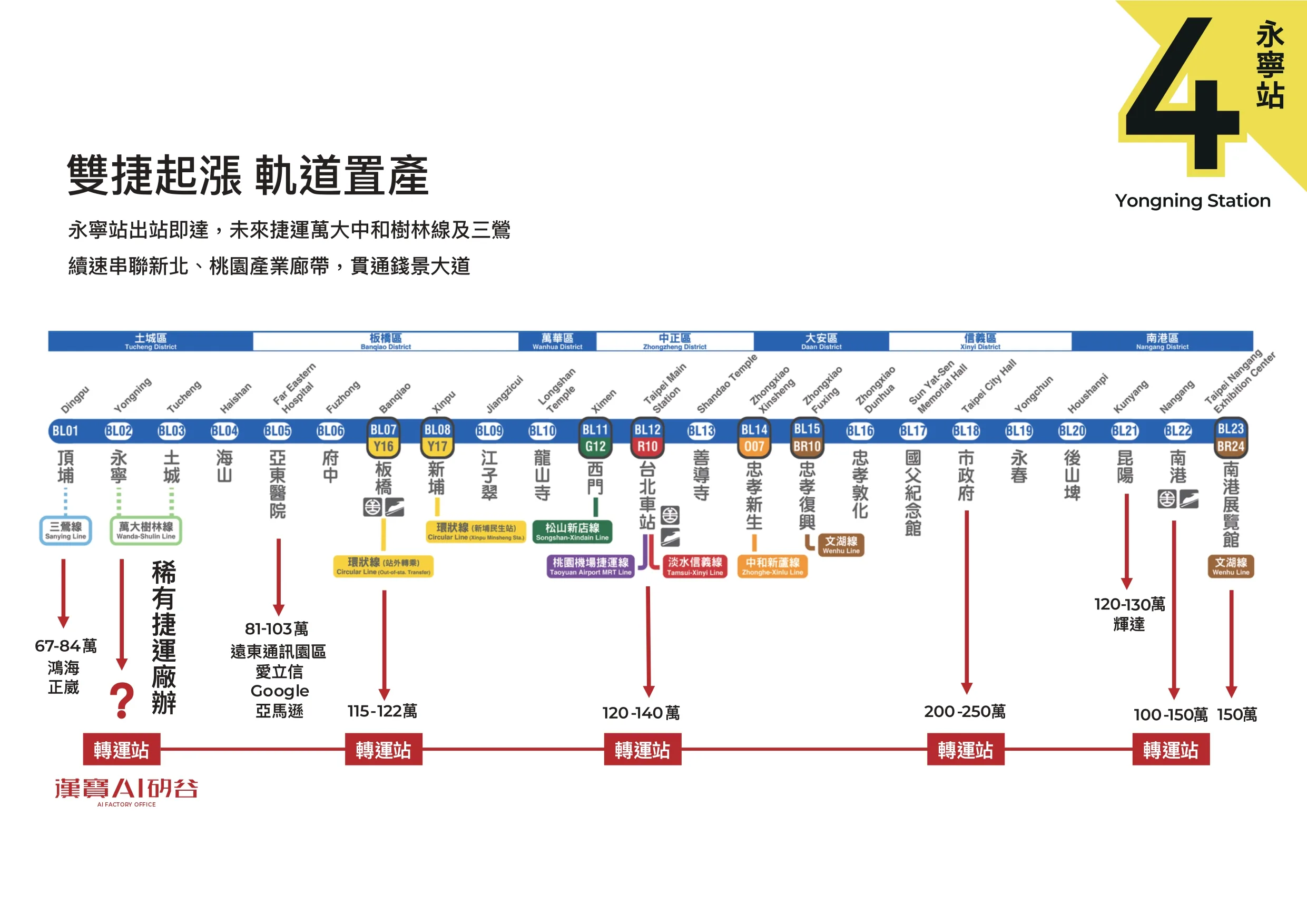 最後土城漢寶ai矽谷距離永寧捷運站4號出口走路1分鐘,又鄰近【永寧轉運站】,其實不管是再招工或是未來發展上都有其優勢!